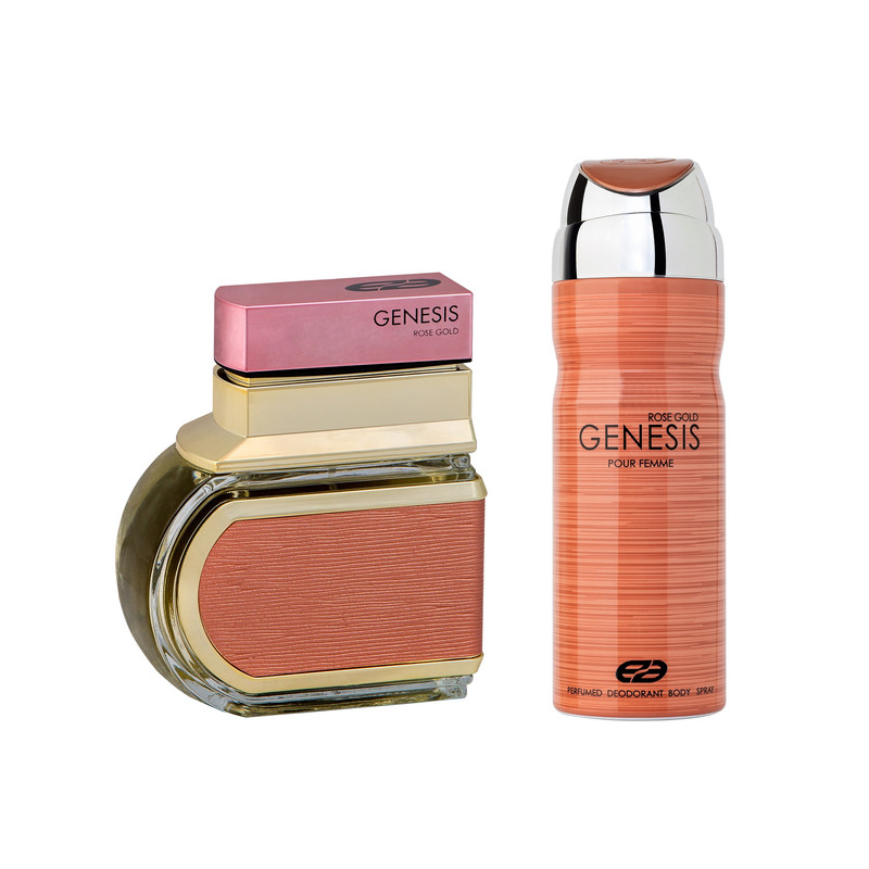 ادو تویلت زنانه عماد آرا مدل Genesis Rose Gold حجم 100 میلی لیتر به همراه اسپری خوشبو کننده بدن زنانه عماد آرا مدل Genesis Rose Gold حجم 200 میلی لیتر