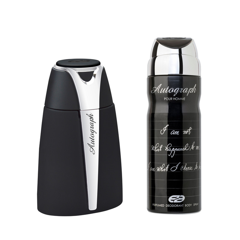 ادو تویلت مردانه عماد آرا مدل Autograph حجم 100 میلی لیتر به همراه اسپری خوشبو کننده بدن مردانه عماد آرا مدل Autograph حجم 200 میلی لیتر