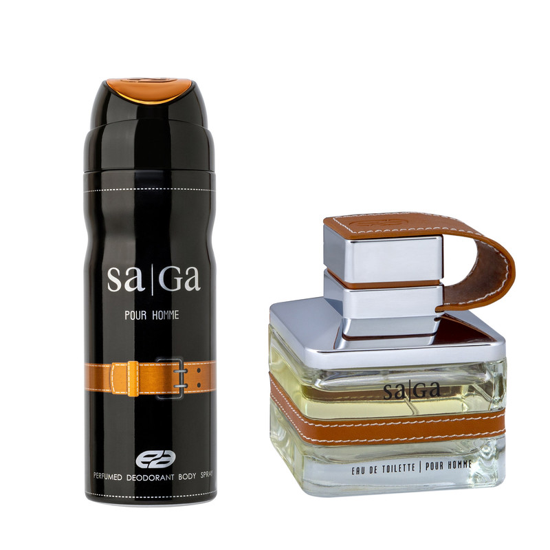 ادو پرفیوم مردانه عماد آرا مدل Saga حجم 100 میلی لیتر به همراه اسپری خوشبو کننده بدن مردانه عماد آرا مدل Saga حجم 200 میلی لیتر