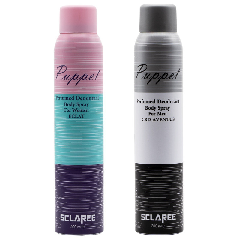 ناموجوداسپری بدن زنانه اسکلاره مدل Puppet حجم 200 میلی لیتر به همراه اسپری بدن مردانه مدل Puppet