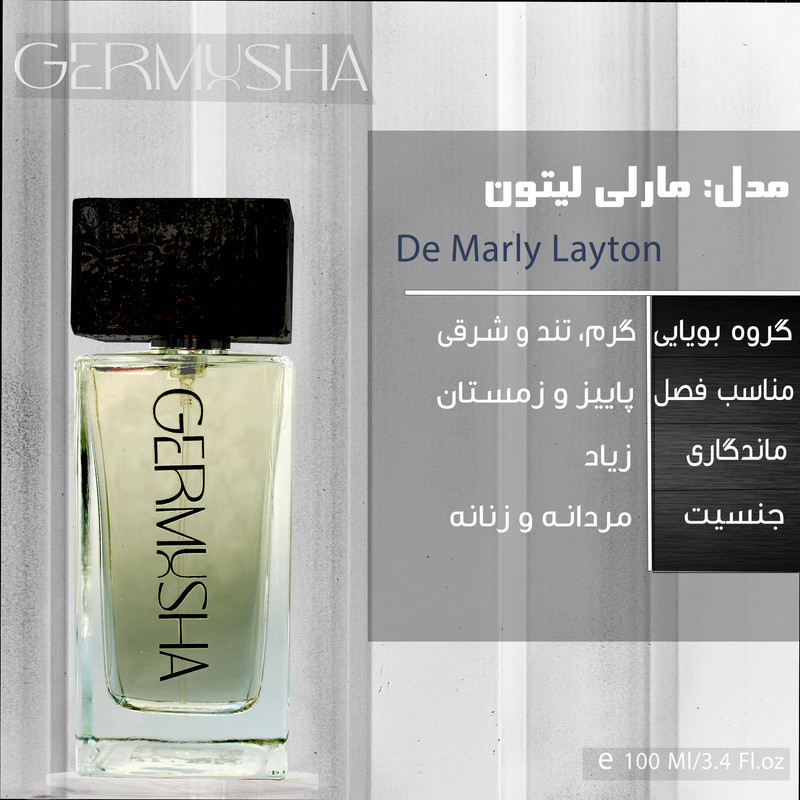 طر ادکلن مارلی لیتون-Parfums de Marly Layton، عطری است بسیار خوشبو با ساختاری ساده اما بسیار دلپذیر. رایحه ابتدایی عطر با بوی نیمه شیرین و شاداب میوه ای مانند از مرکبات آغاز می شود که تلخی ملایمی از اسطوخدوس را نیز می توان در کنارش استشمام نمود. با گذر زمان حس شیرین قوی تر شده و چوب صندل و هل اضافه می گردند. رایحه میانی و پایه عطر رایحه ای نیمه شاداب، شیرین و متعادل از وانیل و تلخی ملایم و مشخصی از چوب صندل و هل می باشد که خوشبو و جذاب می باشد.