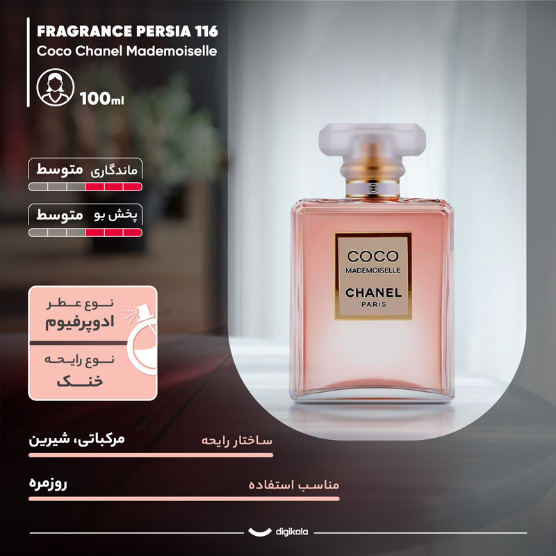 ادو پرفیوم زنانه کوکو مادمازل (Chanel Coco Mademoiselle) محصول سال 2001 است که بهسرعت جایگاه ویژهای در میان عطرهای زنانه پیدا کرد. این عطر با رایحهای دلانگیز و ماندگاری بالا، یادآور شخصیت متفاوت و جسورانه برند شانل است. کوکو مادمازل با ترکیب نتهای گلی و شرقی، رایحهای منحصربهفرد و ماندگار ایجاد میکند که آن را به یکی از محبوبترین و پرفروشترین عطرهای زنانه جهان تبدیل کرده است. انتخابی ایدهآل برای بانوانی که به دنبال عطری لوکس، جذاب و متمایز هستند.