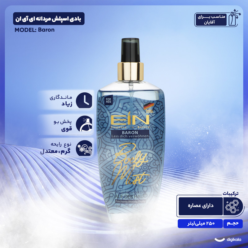 دستهبندی: بادی اسپلشجلوه ظاهری: سادهکشور تولیدکننده: ایرانپخش بو: قویماندگاری: زیادمناسب برای فصل : بهار , تابستانجنس محفظه : پلاستیکشماره مجوز : 56/ظ/5676ترکیبات : دارای عصارهصادرکننده مجوز : سازمان غذا و دارونوع رایحه : گرم , معتدلمناسب برای : آقایانحجم : 250 میلیلیترساختار نتها : چوب , میوه , گیاهان معطرنمایش بیشتر