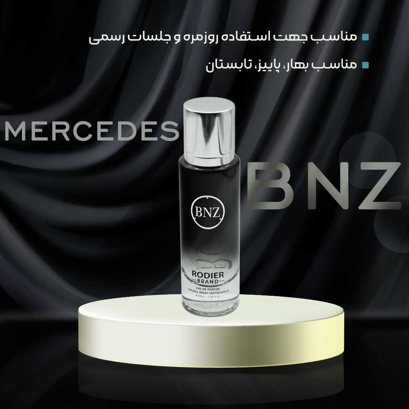 اینکه چرا بو های چرمی و چوبی چنین تاثیر عمیقی در نمایش صلابت، قدرت و اراده یک مرد دارند را شاید باید در صد ها سال قبل جستجو کرد. جایی که مردان قدرتمند حیوانات سرکش را رام می کردند و گرما و سر پناه برای خانواده خود فراهم می کردند. همین موضوع باعث شده تا عطر های که توانسته اند ترکیب قدرتمندی از این دو گروه بویایی عرضه کنند از شما یک مرد محکم و تکیه گاهی قابل اعتماد در ذهن دیگران بسازند. یکی از بهترین ترکیب ها را می توانید در عطر MERCEDES BNZ از برند با کیفیت رودیر پیدا کنید. در همین ابتدا باید گفت این یک عطر لوکس با بویی منحصر به فرد است که به واسطه کیفیت بالای برند رودیر ، ماندگاری و پخش بوی آیده آلی دارد. عطر فوق برای استفاده روزمره طراحی شده اما اگر آن را با استایل رسمی استفاده کنید می توانید اعتماد اطرافیانتان را بدست آورید و اگر با استایل های اسپرت و مخصوصا بر پایه چرم از آن استفاده کنید گویی جهان اطرافتان را با جسارت و عطشتان تسخیر کرده اید و مطمئنا احساس احترام آمیخته با تحسین را در دیگران بیدار می کنید. ساختار نت های این عطرِ به خصوص راز جادوی آن را فاش خواهد کرد نت هاي ابتدايي این ادکلن از مريم گلي، فلفل صورتي، ترنج ايتاليايي تشکیل شده نت هاي مياني آن خس خس هائيتي و چرم هست و نت های پایانی این عطر هم شامل چوب آكيگالا، پوسته كاكائو، برگ پانچولي اندونزيايي، آمبروكسان است . یک ترکیب جادویی از بوهای چوب، کهربا ، ادویه و چرم . امتحان این عطر را به هیچ وجه از دست ندهید.