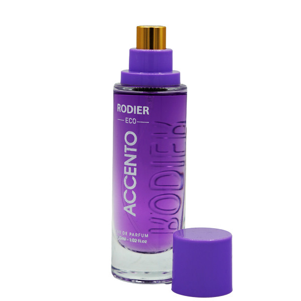 عطر جیبی رودیر اکو ACCENTO با رایحه ی خنک و شرقی چوبی خود برای فصول بهار و تابستان قابل استفاده است . در نت های آغازین این محصول رایحه هایی همچون سنبل و آناناس به مشام شما میرسد و رایحه های فلفل صورتی ، زنبق و یاس با گذشت زمان حس خنکی بینظیری را به شما میبخشد . اگر دوستار رایحه ی مشک و عنبر هستید این عطر برای شما انتخابی فوق العاده است چرا که مشك، كهربا، وانيل، نعناع هندي ، خس خس، عنبر و تيور در نت های پایانی آن به چشم می خورد .عطر فوق مناسب مصارف روزانه و مهمانی ها میباشد و فرم جیبی آن به شما این امکان را می دهد که در هر محفلی آن را همراه خود داشته باشید و عطر را بازیابی کنید . فرم درب این عطر نیز با طراحی نوین خود مانع هر گونه نشتی و خروج ناخواسته عطر میشود پس خیالتان از حمل آن در کیف یا جیبتان راحت خواهد بود .
