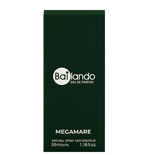 عطر جیبی مردانه و زنانه بایلندو مدل مگاماره از سری عطرهای دلنشین است که با سلیقه آقایان و بانوان سازگار است. این عطر رایحه ای خنک و تلخ دارد. مگاماره ظرافت، روح آزادی و شادابی اقیانوس را در شما زنده می کند و به قلب آقیانوس ها می فرستد. ترکیبات رایحه این عطر، آن را به انتخابی ایده آل برای استفاده روزانه در تمام فصول تبدیل کرده است. نت های آغازین و میانی مگاماره رایحه ای از مرکبات، حس دریایی و گل و گیاه های معطر را به ارمغان می آورد و باعث حس آرامش و اعتماد به نفس خاصی در فرد می شود. نت های پایانی این عطر نیز با رایحه ای از چوب صندل سفید، مشک و عنبر باعث مانگداری بیشتر عطر می شود. نکته قابل ذکر آنکه این عطر در حجم پایین 35 میلی لیتر با بسته بندی شیک طراحی شده و به راحتی می توانید آن را در کیف و جیب خود حمل کنید.