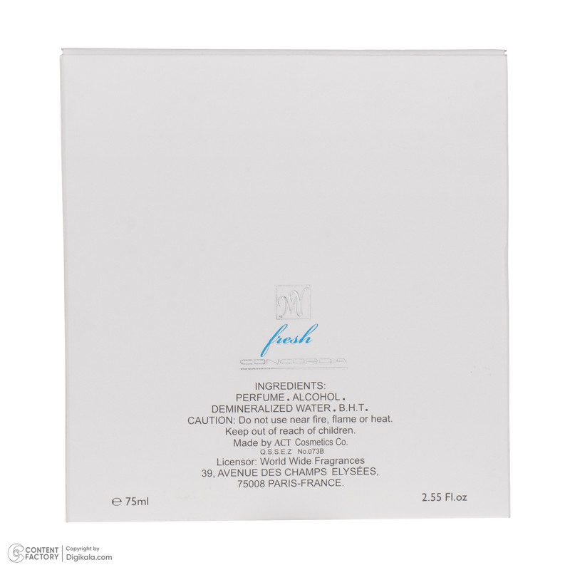 با استفاده از این عطر، هر روز خود را با احساسی نو و تازه آغاز کنید. عطر کنکوردیا مموریز مای، با حجم 75 میلی لیتر، همراهی دلنشین و دائمی برای شما خواهد بود. این عطر نه تنها حس تازگی و انرژی را به شما منتقل میکند، بلکه با رایحهای خنک و ملایم از دریا، به شما احساس طراوت و شادابی میبخشد. این عطر توسط برند معتبر مای (My) تولیدشده.