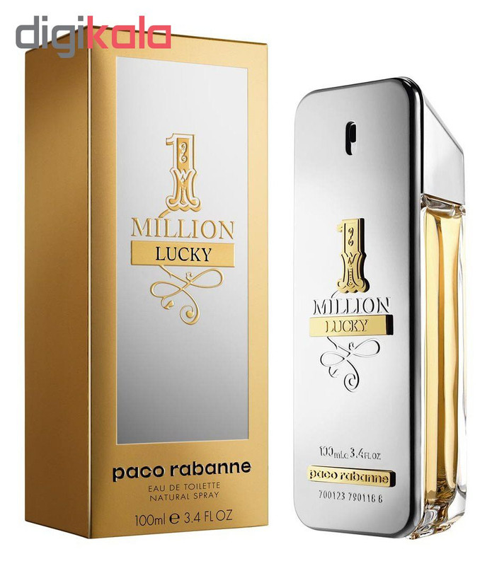 این ادو تویلت یکی از جدیدترین محصولات برند پاکو رابان، از مجموعه million است. اولین سری از این مجموعه در سال 2008 با معرفی عطر مردانه 1Million و در سال 2010 عطر زنانه Lady Milllion شروع به کار نمود و در آخرین طراحی این مجموعه در سال 2018، 1Miliion Lucy برای مردان و Lady million LUcky. ادو تویلت پاکو رابان مدل 1Million Lucky ، عطری است گرم ودلنشین که شروعی شیرین و میوه ای از آلو با همراهی رایحه دلپذیری از فندق دارد که حسی خوشمزه و دوست داشتنی در عطر ایجاد میکند. با گذر زمان رایحه فندق محو شده و عطر گرمتر و شیرینتر میشود و همزمان رایحه چوبها نیز به جمع روایح اضافه میشوند. رایحه میانی و پایه عطر رایحه ای گرم، شیرین، وانیلی مانند و در عین حال تلخ و چوبی است که حسی صمیمی و جذاب دارد.